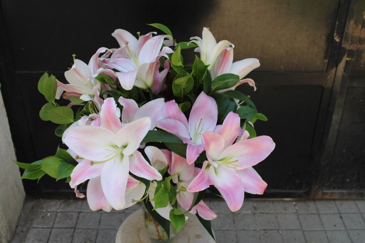 realizado con lilium, margaritas, alstromerias y lisianthun